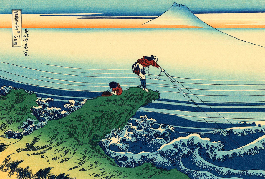 Un gran ejemplo de esto son las Treinta y seis vistas del monte Fuji, realizadas por Hokusai no sólo en momentos del día y del año diferentes, sino también bajo diferentes estados de ánimo. Debido a su gran éxito, a la serie original de treinta y seis grabados le siguieron diez adicionales. En todas estas estampas del mundo flotante aparece invariablemente la figura del monte Fuji, símbolo cultural y religioso de gran importancia en Japón, asociado con la vida eterna.