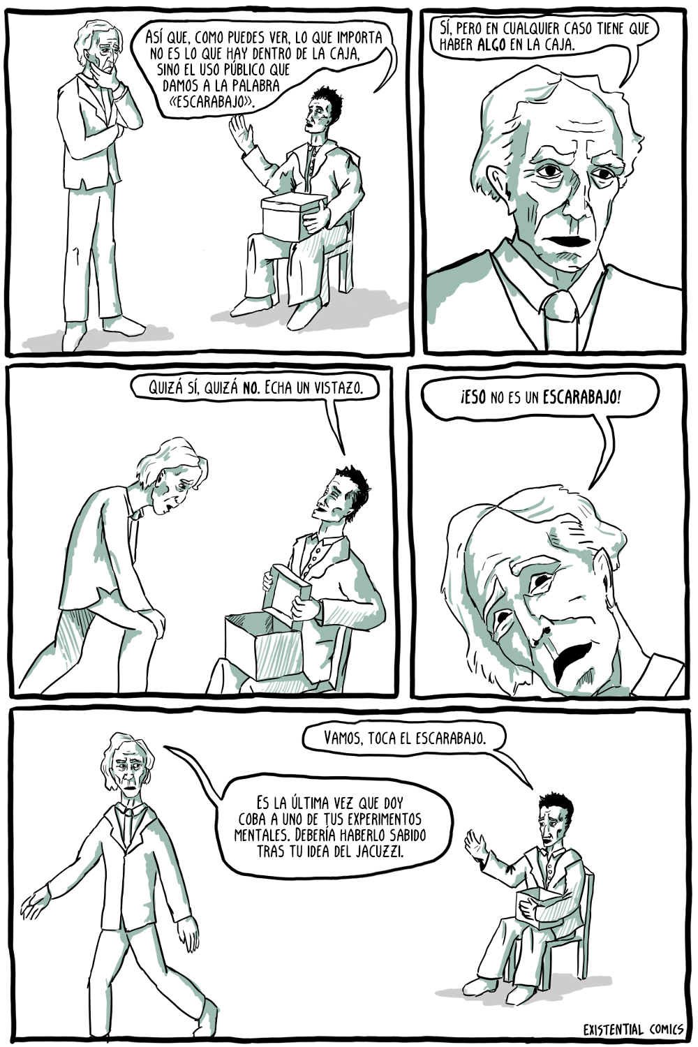 El escarabajo en la caja es un experimento mental de Ludwig Wittgenstein que trata de demostrar que el lenguaje privado es un concepto incoherente. La idea que combate es la de que podríamos, si quisiéramos, disponer de un lenguaje privado para referirnos a sensaciones inmediatas como el dolor. Wittgenstein proponía que imagináramos a un grupo de personas, cada una con una caja y un «escarabajo» dentro de ella. Cada persona puede mirar sólo dentro de su propia caja, más o menos como sólo cada persona puede sentir su propio dolor. Sostenía que cada uno aprende la palabra «escarabajo» únicamente al observar su uso social, y aquello a lo que se refiere no puede corresponder al contenido de sus cajas, ya que podría haber algo diferente (o nada en absoluto) dentro de ellas.