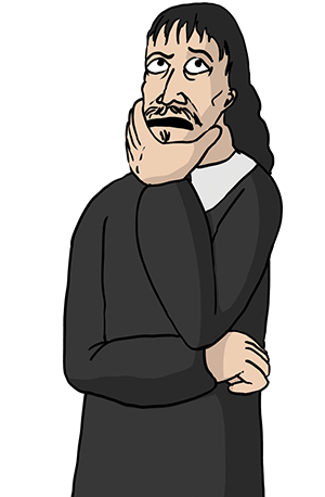 René Descartes 1596-1650 Tiras en las que aparece: Todas las tiras son adaptaciones al español de la publicación semanal Existential Comics, cuyo autor es Corey Mohler.